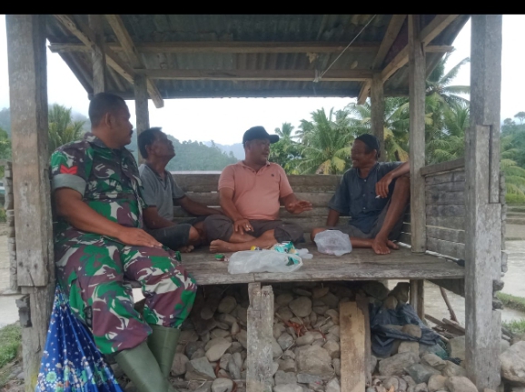 ACEH SELATAN – Sebagai wujud komitmen TNI dalam mendukung program ketahanan pangan nasional, Babinsa Koramil 11/Kluet Tengah Koptu Ali melaksanakan kegiatan diskusi bersama para petani di pondok sawah bertempat di Desa Mersak Kecamatan Kluet Tengah, Kabupaten Aceh Selatan, Minggu (13/7/2025).
