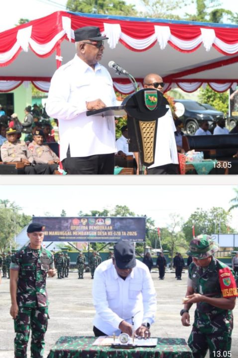 Timika – Komando Distrik Militer (Kodim) 1710/Mimika resmi memulai kegiatan TNI Manunggal Membangun Desa (TMMD) Reguler ke-128 Tahun 2026. Upacara pembukaan dipimpin langsung oleh Bupati Mimika, Johannes Rettob, S.Sos., M.M., yang bertindak sebagai Inspektur Upacara (Irup), bertempat di Makodim 1710/Mimika, Kabupaten Mimika, Papua Tengah, Rabu (22/4/2026).