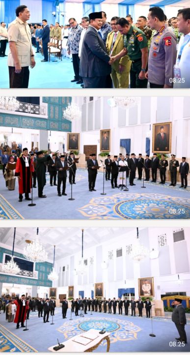 (Puspen TNI). Panglima TNI Jenderal TNI Agus Subiyanto menghadiri acara pengucapan sumpah Hakim Konstitusi, pelantikan keanggotaan Ombudsman Republik Indonesia (RI) masa jabatan 2026–2031 serta Duta Besar Luar Biasa dan Berkuasa Penuh Republik Indonesia (LBBP RI) untuk Kesultanan Oman merangkap Republik Yaman, yang dipimpin langsung oleh Presiden RI Prabowo Subianto di Istana Negara, Jakarta Pusat, Jumat (10/4/2026).