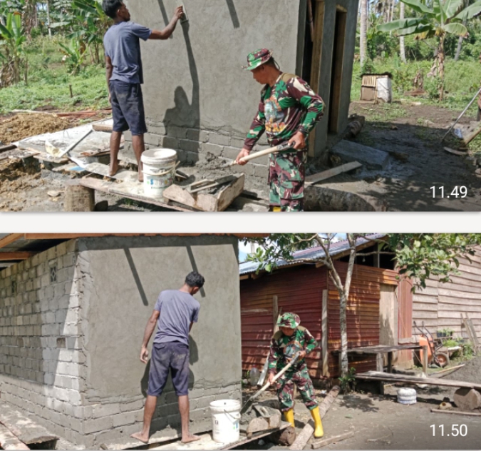 Salah satu personel TMMD, Sertu Junaidi Pawah mengatakan, “Pekerjaan pelesteran MCK ini kami lakukan bersama warga agar prosesnya lebih cepat selesai dan hasilnya maksimal,” ujarnya.
