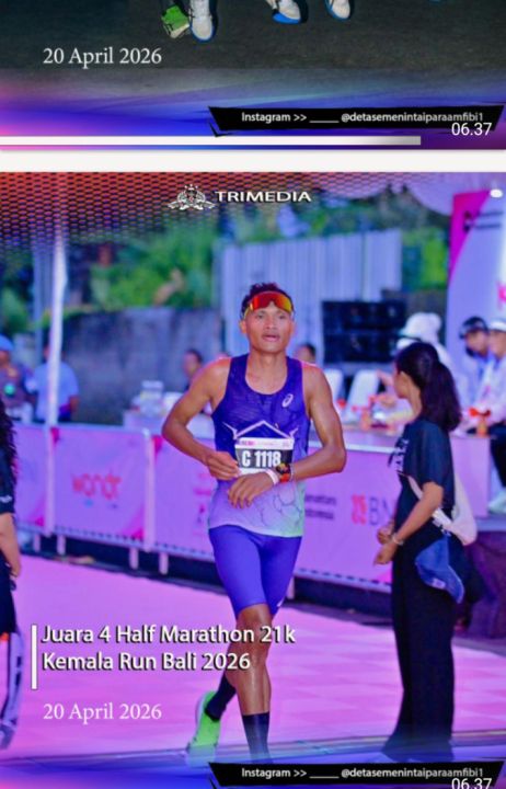 Dispen Kormar, TNI Angkatan Laut (Jakarta). Prajurit Korps Marinir dari Detasemen Intai Para Amfibi 1 Marinir (Denipam 1 Mar) Praka Marinir Sedilta Pilon Nubatonis yang tergabung dalam Federation Triathlon Indonesia (FTI) Jawa Barat, kembali menorehkan prestasi gemilang pada ajang Kemala Run Bali 2026, Minggu (19/04/2026).