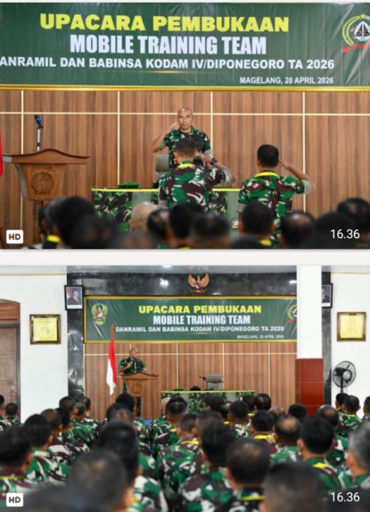 (Pen Pusterad). Pusat Teritorial Angkatan Darat (Pusterad) menggelar kegiatan Mobile Training Team (MTT) Tahun Anggaran 2026 yang di ikuti oleh 200 peserta, terdiri dari 50 Komandan Koramil (Danramil) dan 150 Bintara Pembina Desa (Babinsa) jajaran Kodam IV/ Diponegoro. Kegiatan ini berlangsung di Aula A. Yani Rindam IV/Diponegoro, Magelang, Jawa Tengah, Senin (20/4/2026).