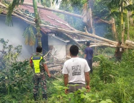 Mendapati laporan adanya musibah bencana alam di wilayah desa binannya tersebut, Babinsa Koptu Sri Raharjo segera berkoordinasi dengan perangkat desa, warga, dan petugas lainnya untuk melakukan evakuasi pohon menggunakan alat seadanya. Dengan gotong royong, pohon akhirnya berhasil dipotong dan dipindahkan dari lokasi kejadian.