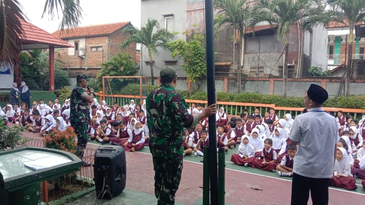 Kodim 0505/Jakarta Timur – Bertempat di SDN 27 Pagi, Jalan Skip Ujung Kelurahan Utan Kayu Selatan Kecamatan Matraman Jakarta Timur, Babinsa Koramil 02/Matraman memberikan materi Wawasan Kebangsaan (Wasbang) kepada siswa-siswi, Selasa (15/07/2025).