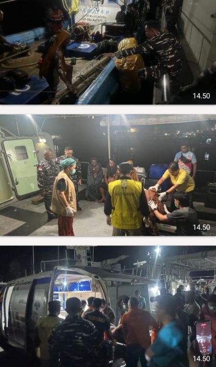 TNI AL BERSAMA TIM GABUNGAN EVAKUASI KAPAL TERBAKAR, 14 ORANG BERHASIL DISELAMATKAN